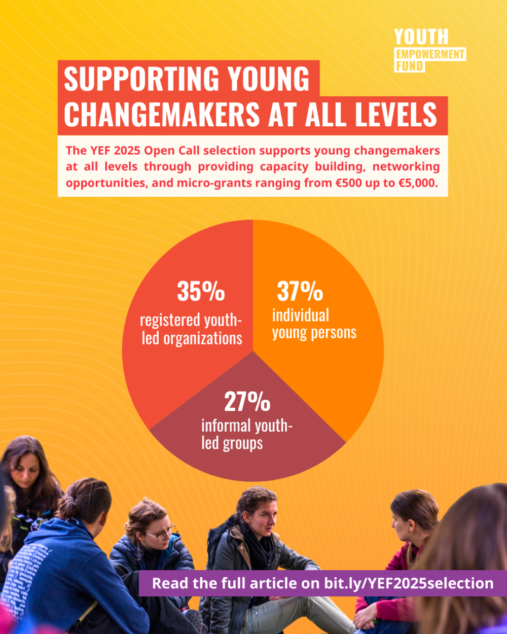 Through the YEF open call cycle in 2025, selected individuals and informal groups will receive micro-grants ranging between €500 and €1,500, while selected registered youth-led organizations will receive up to €5,000 in funding to scale their impact.